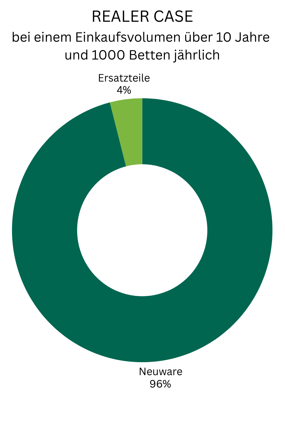 An analysis of a procurement volume of over 1,000 care beds paints a clear picture: around 96 per cent of the volume consists of new goods, with spare parts accounting for just around 4 per cent. And this is despite a spare parts portfolio that has been maintained for over ten years.