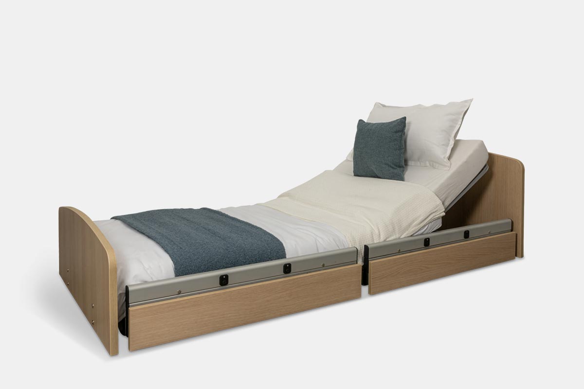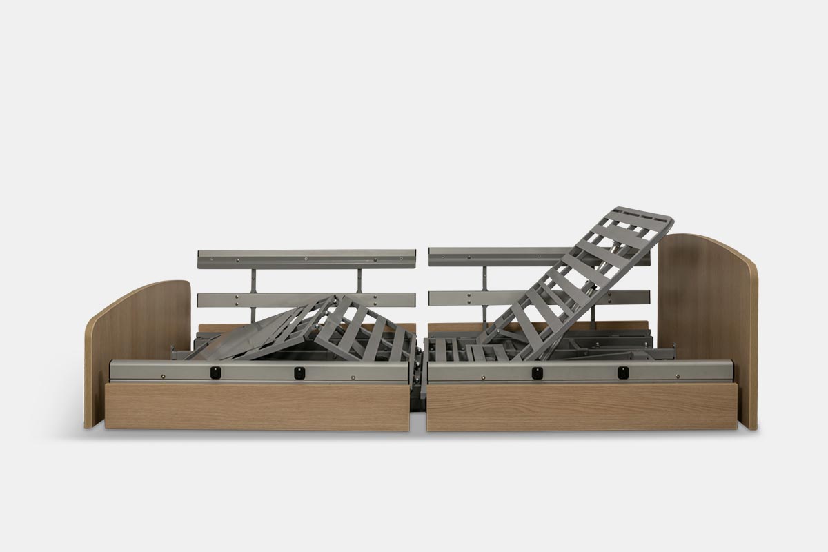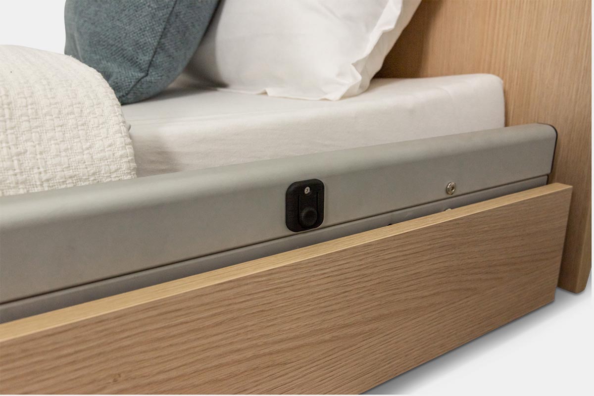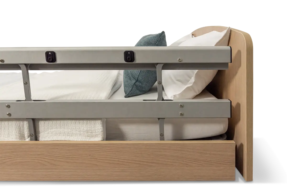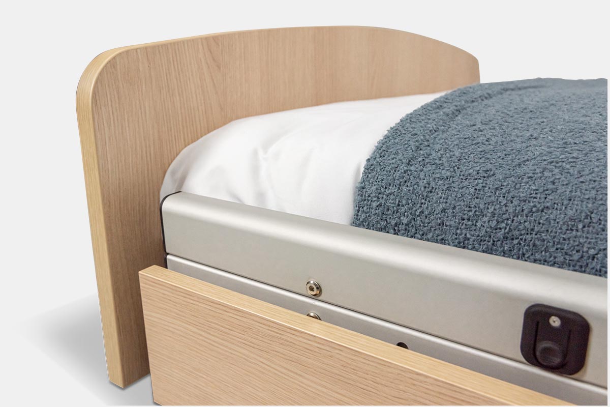Dadurch wird das Bett zum idealen Begleiter sturzgefährdeter Menschen in der häuslichen Pflege oder im Pflegeheim.